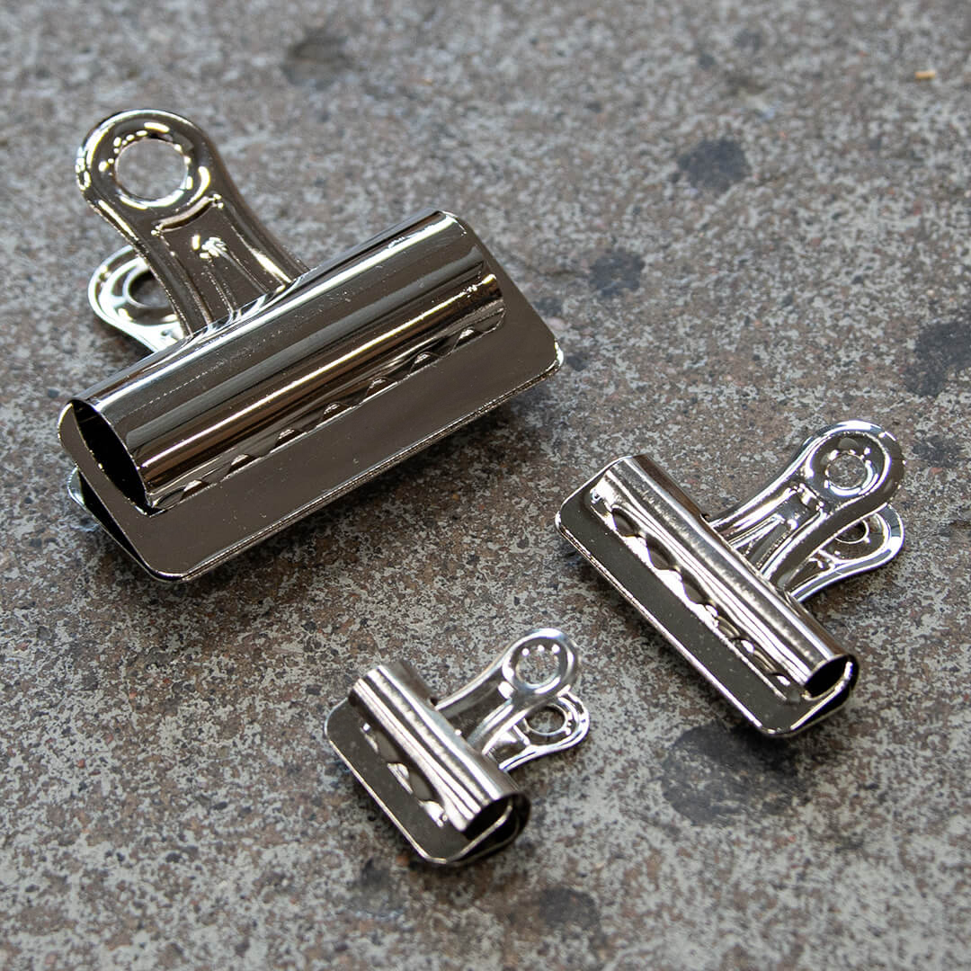 Klipsejä, paperipuristimia ja tarjouskansiomekanismeja on saatavilla useita eri malleja ja kokoja.